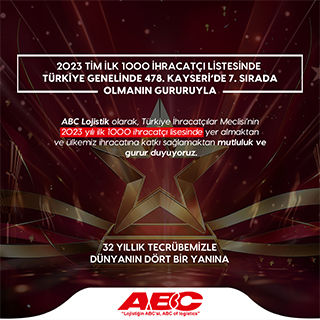 Bir dünya markası olan ABC Lojistik, Avrupa'nın her noktasından Irak, Türkmenistan, Kırgızistan, Özbekistan, Kazakistan, Azerbaycan, Gürcistan bölgelerine hizmetine devam etmektedir.